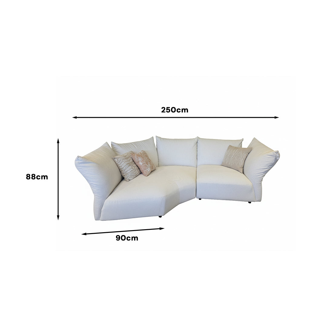 Experience the perfect blend of style and functionality with the 2.5 Seater Paulo Curved Sofa. Designed for ultimate comfort, its adjustable backrest effortlessly moves up and down, allowing you to customize your seating experience - whether you prefer a sleek low-profile look or enhanced back support.